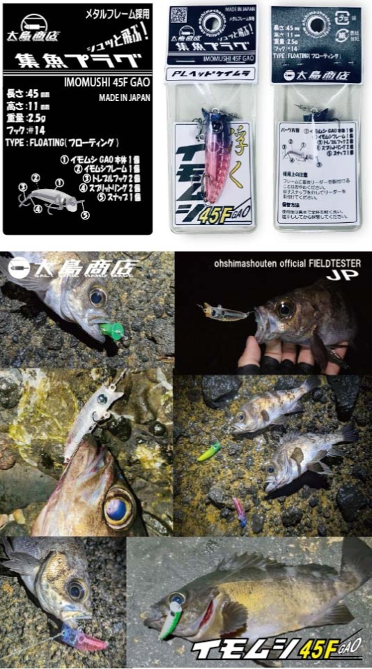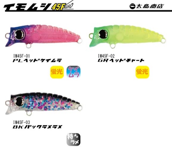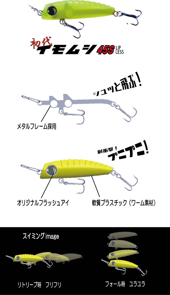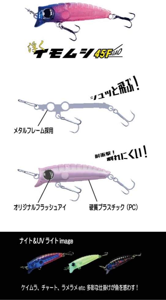 潮に漂わせてフワフワさせながら誘うのが好きな方は初代イモムシ、浮いてるヤツをアグレッシブに狙うなら是非イモムシ45FGAOを使ってみてください。
